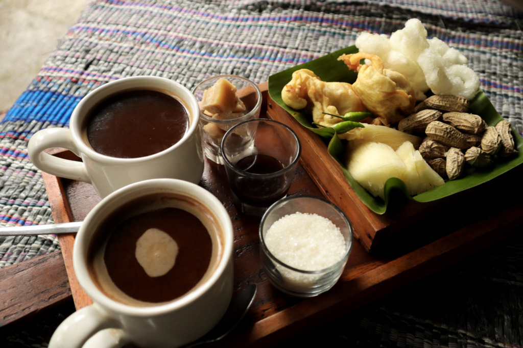 Di kedai ini, kita juga bisa memesan kopi secara paketan. Artinya, kopi akan dihidangkan bersama camilan tradisional seperti gorengan, geblek goreng, ketela rebus, dan kacang rebus.