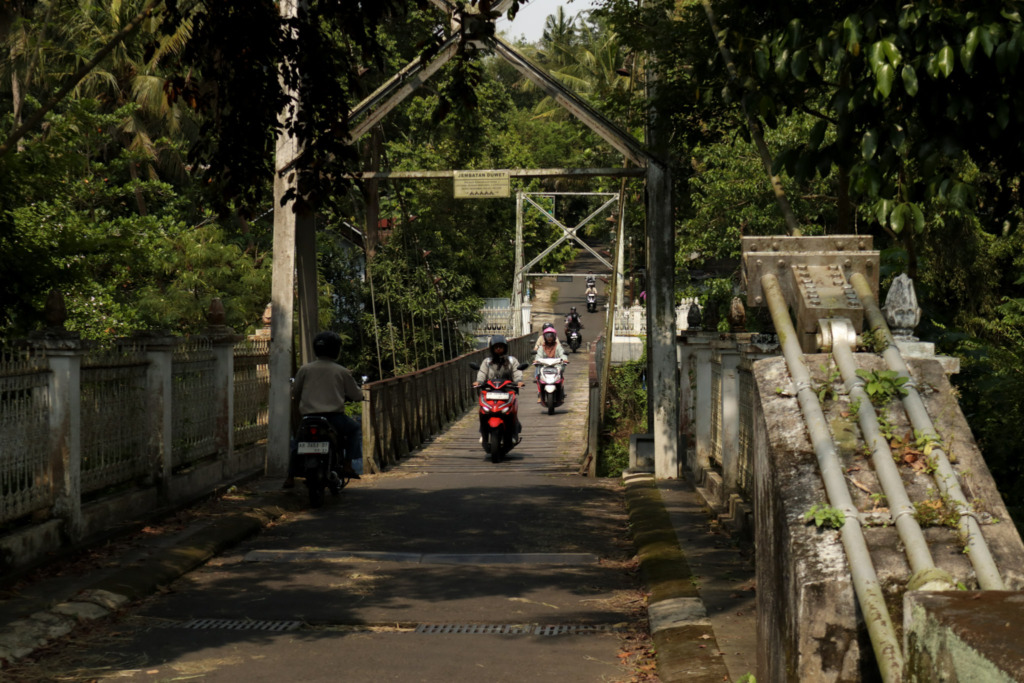 Rute berangkat yang kami pilih adalah dari Terminal Jombor menuju Kulon Progo melewati Jembatan Duwet. Jembatan gantung ini didirikan sejak zaman Belanda pada tahun 1930 dan hanya dapat dilalui oleh kendaraan roda dua saja.